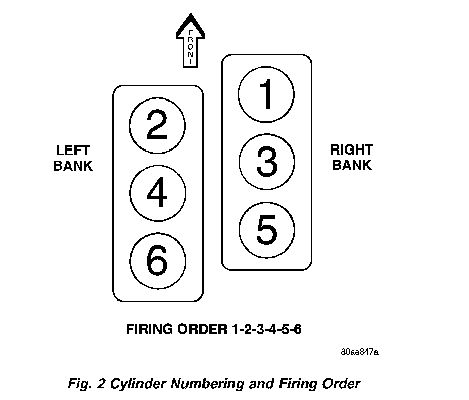 The cylinders are numbered from front to rear, with the right bank odd numbered, and the left bank even numbered (Fig. 2). The firing order is 1-2-3-4-5-6.