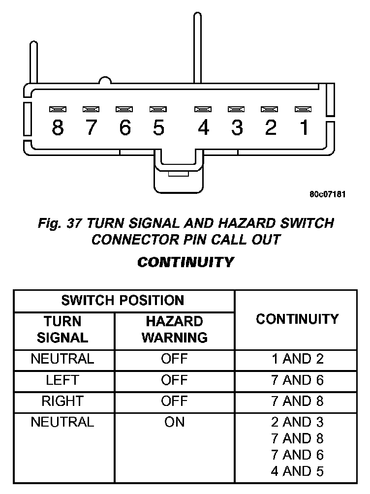 Fig. 37 Turn Signal And Hazard Switch Connector Pin Call Out: