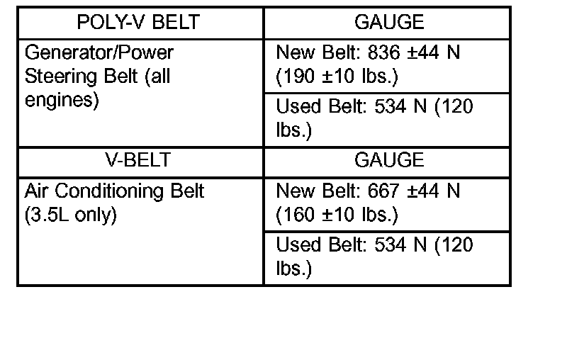 BELT TENSION CHART-2.7/3.5L ENGINES