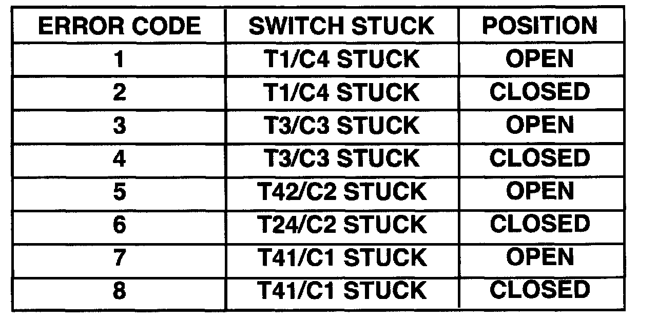 - C1 through C4 (T1, T3, T41, or T42) circuits are open, shorted to ground, or shorted to 12 volts.