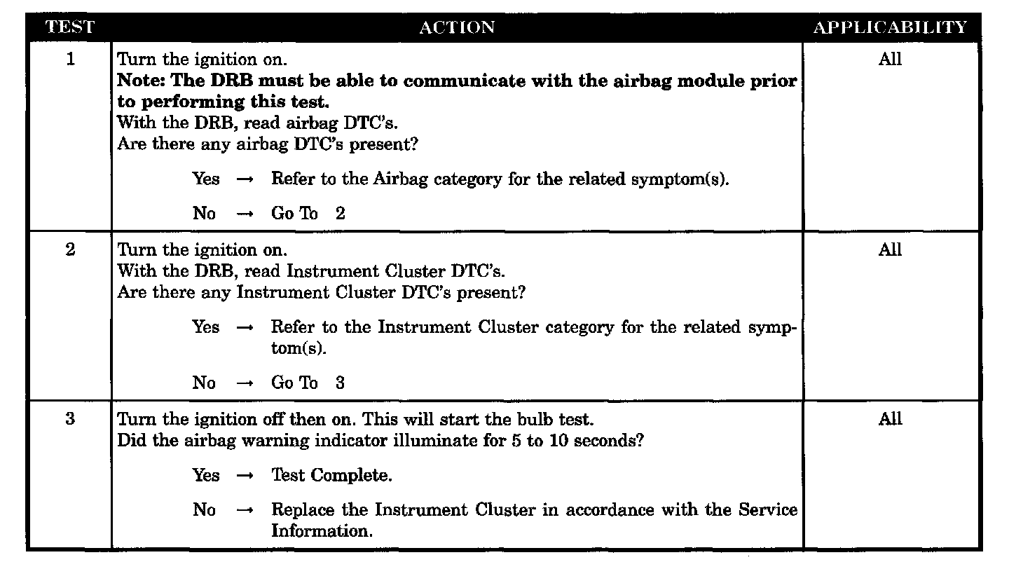 AIRBAG WARNING INDICATOR NOT OPERATING PROPERLY