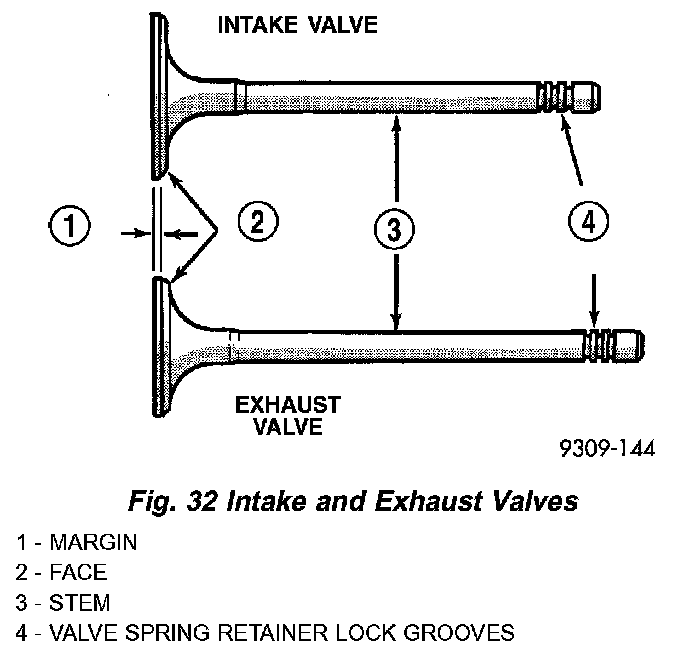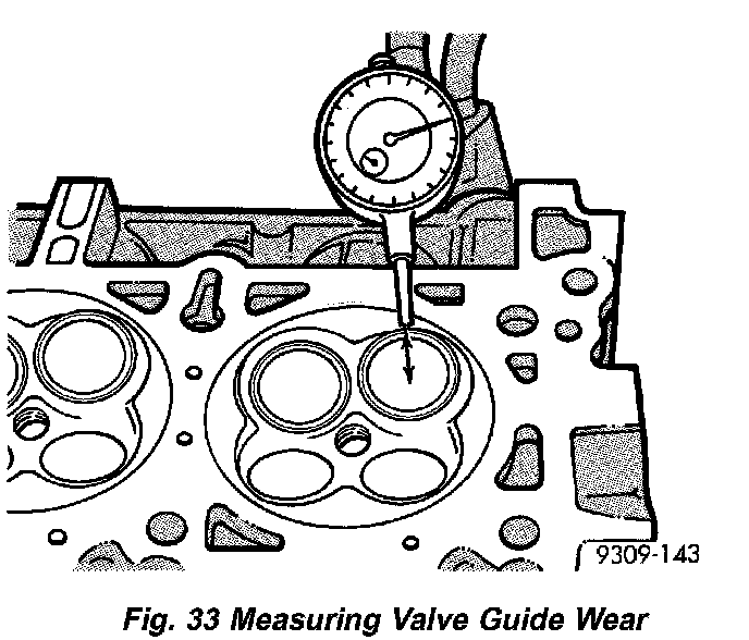 1. Measure valve stems for wear (Fig. 32) approximately 60 mm (2.36 inch) below the valve lock grooves.