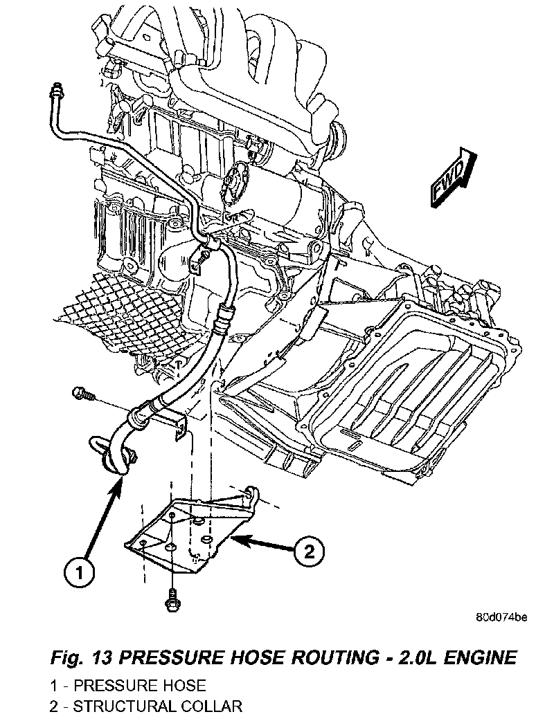 INSTALLATION - 2.0L ENGINE1. Install the power steering pressure hose into the engine compartment reversing the direction in which it was removed.