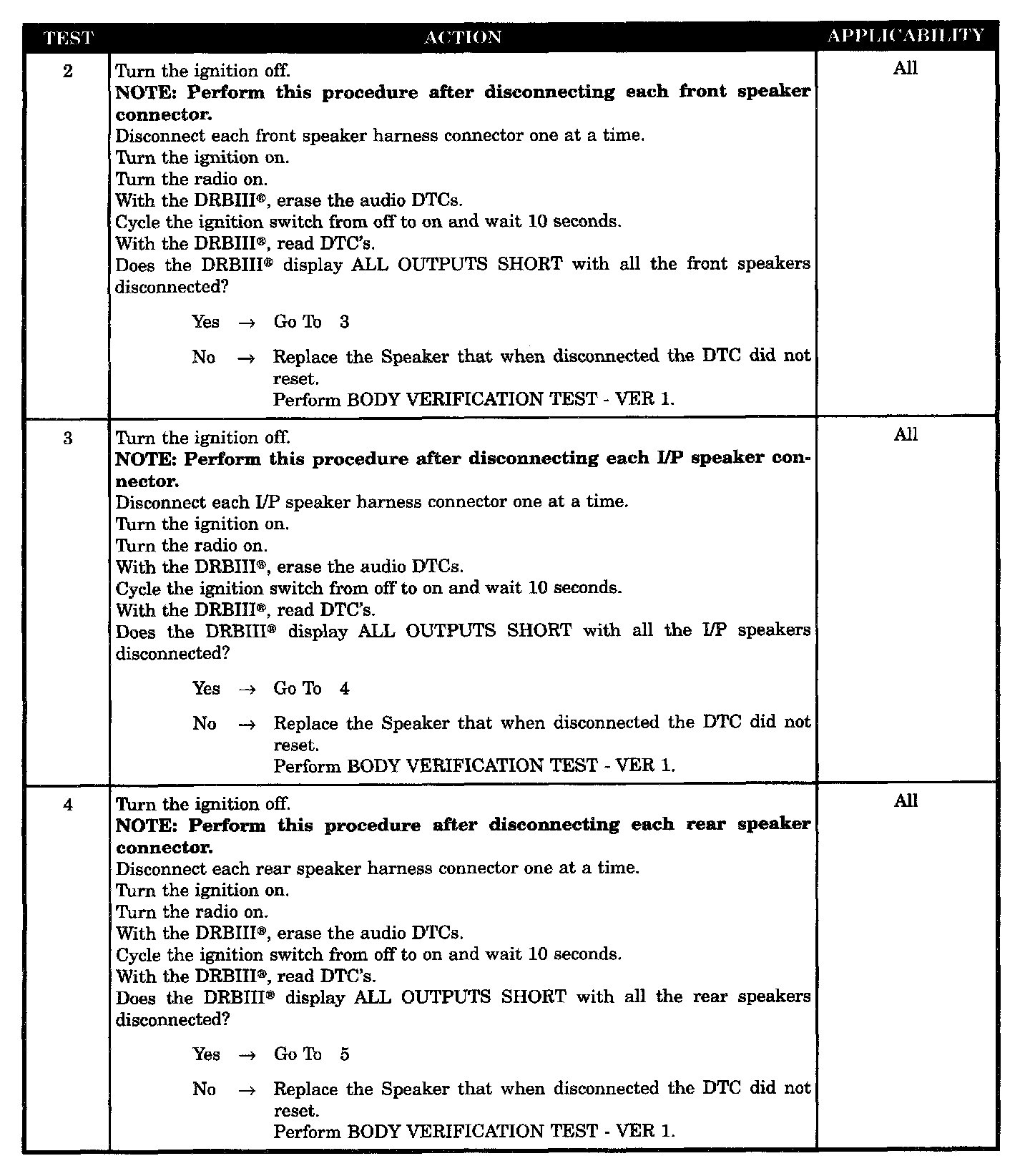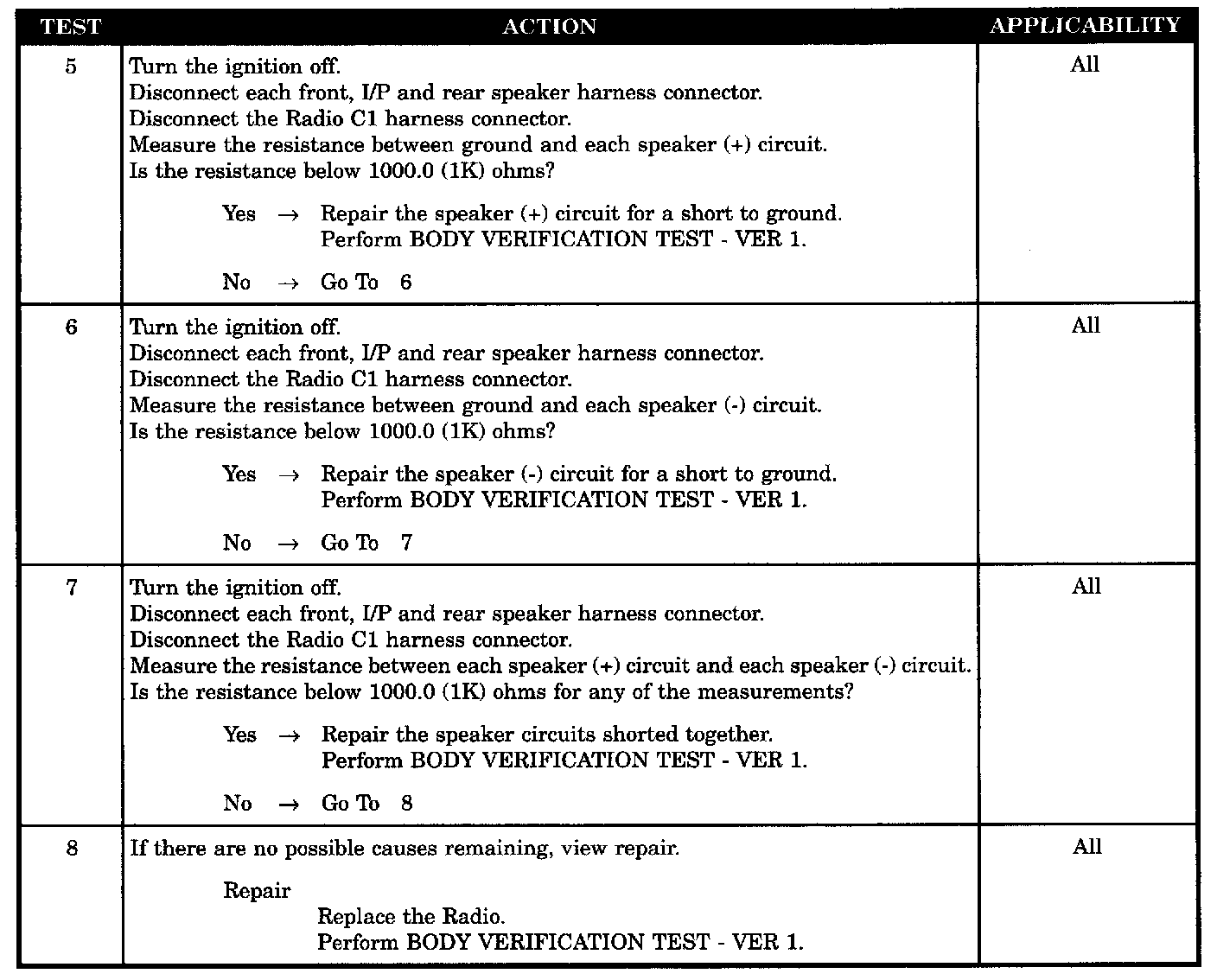 - Speaker (+) & (-) circuits shorted together