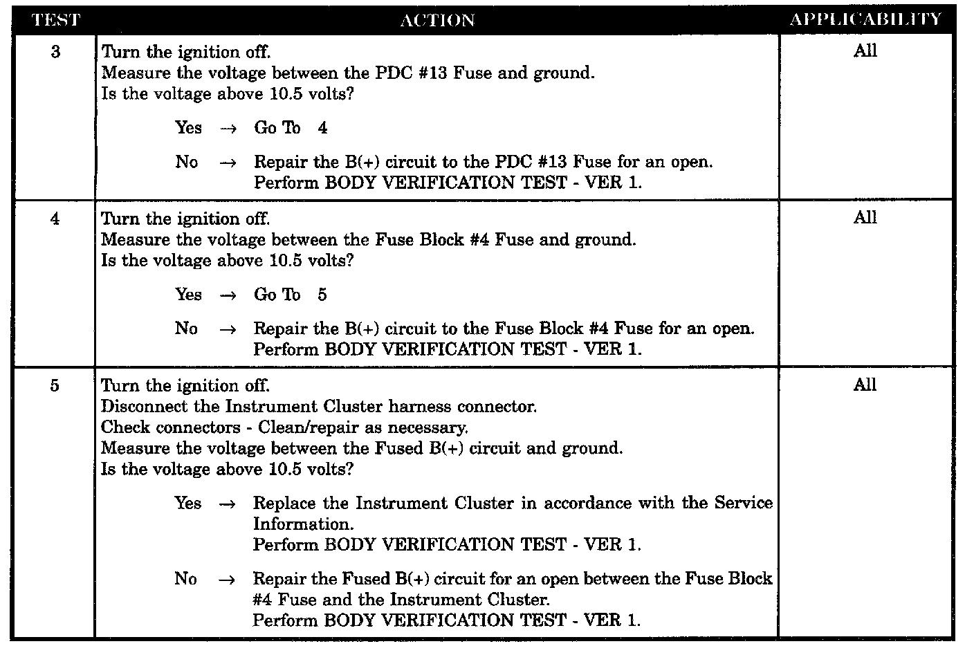 When the Instrument Cluster detects that the ignition has been turned ON but detects no Fused B(+) circuit.