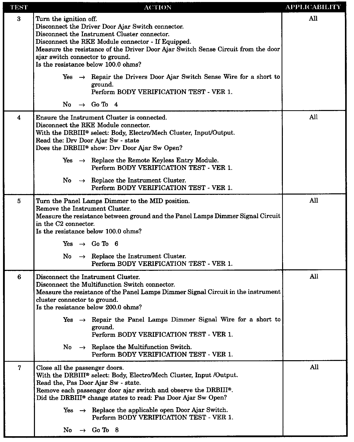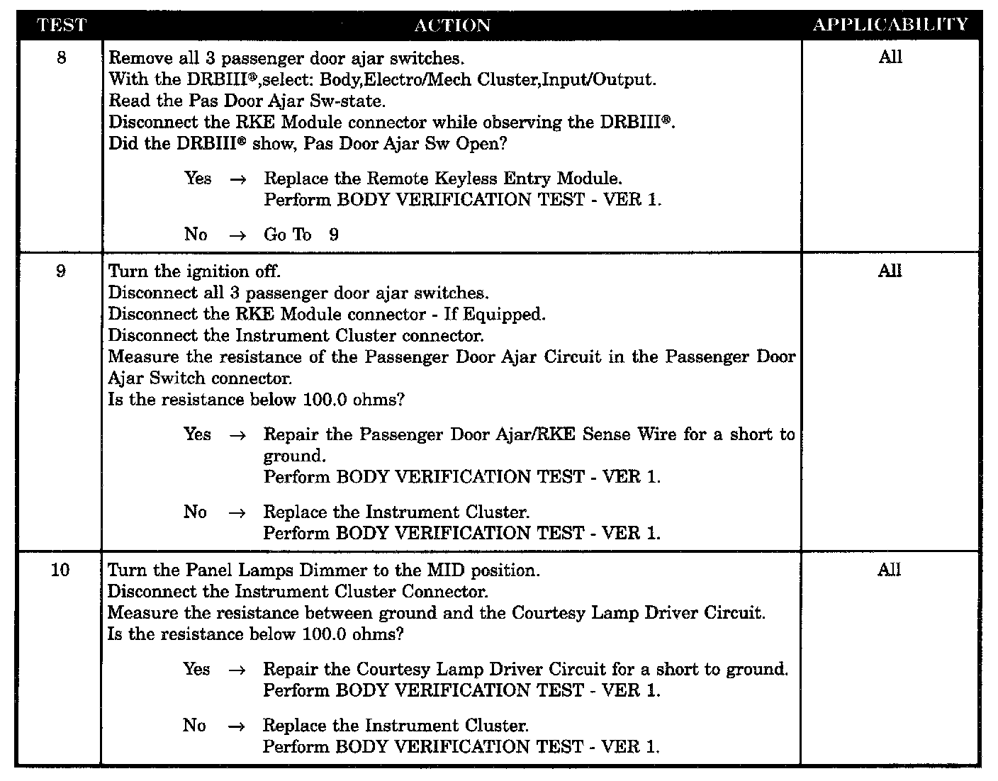 - Passenger door ajar/RKE sense wire shorted to ground