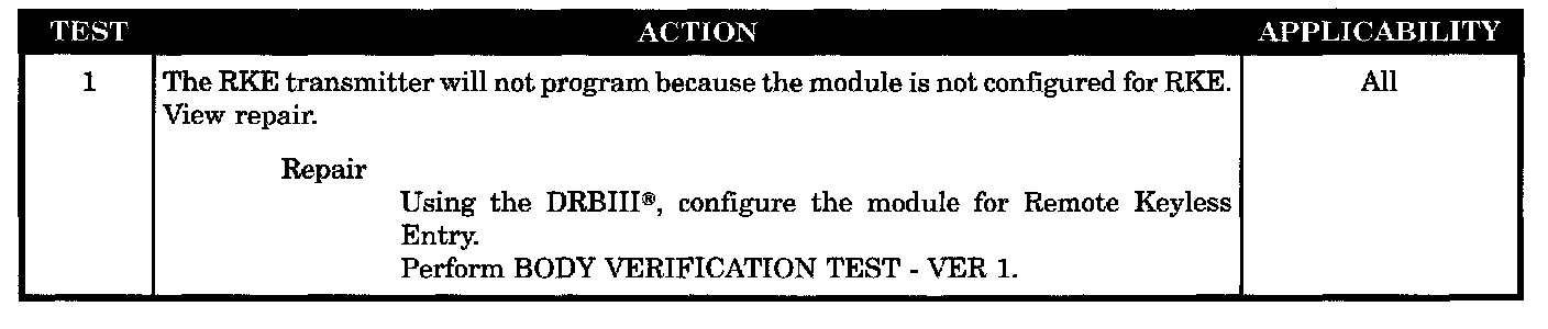 When the operator attempts to program a transmitter and the RKE module is not configured for RKE.