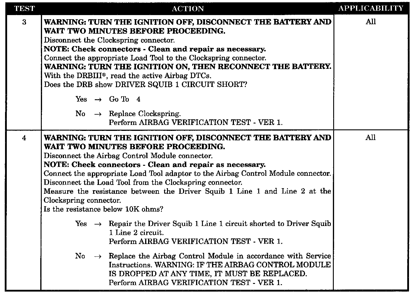 - Clockspring, driver squib 1 circuit short