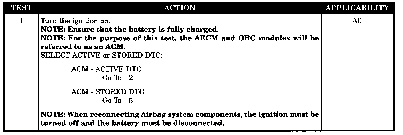 With the ignition ON the ACM monitors the resistance of the Driver Squib 1 circuits.