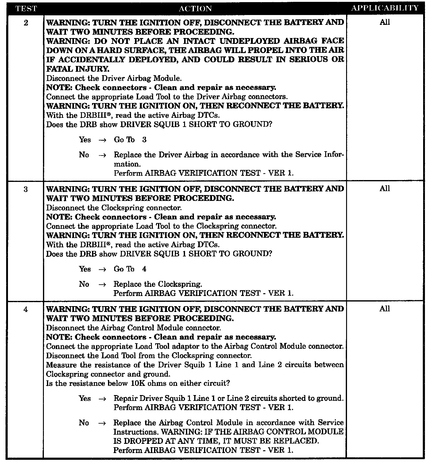 DRIVER SQUIB 1 SHORTED TO GROUND