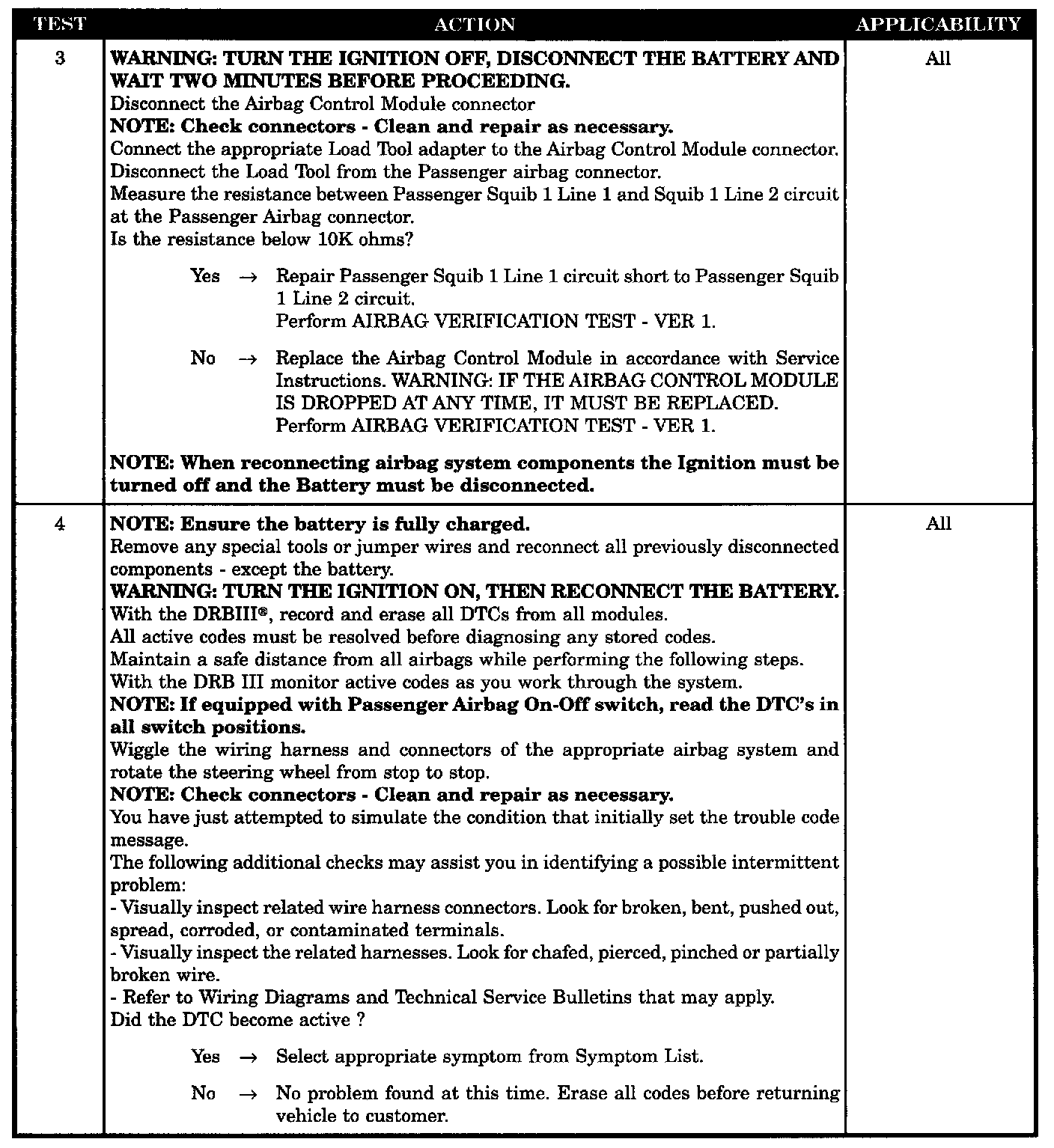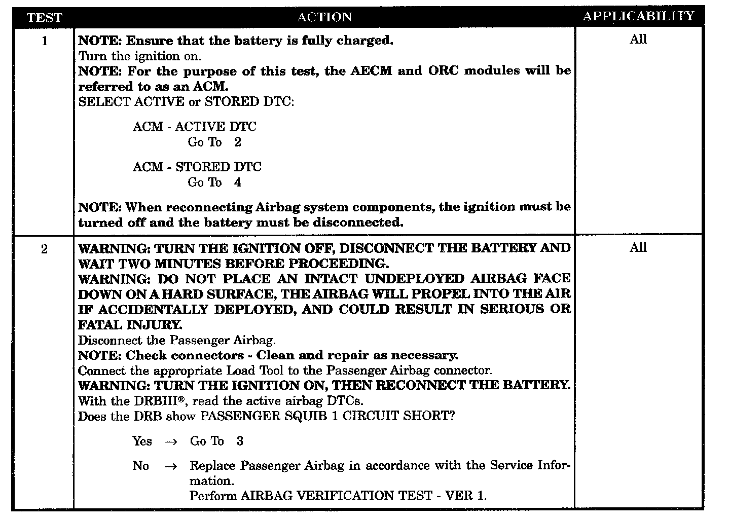 - ACM, passenger squib 1 circuit short