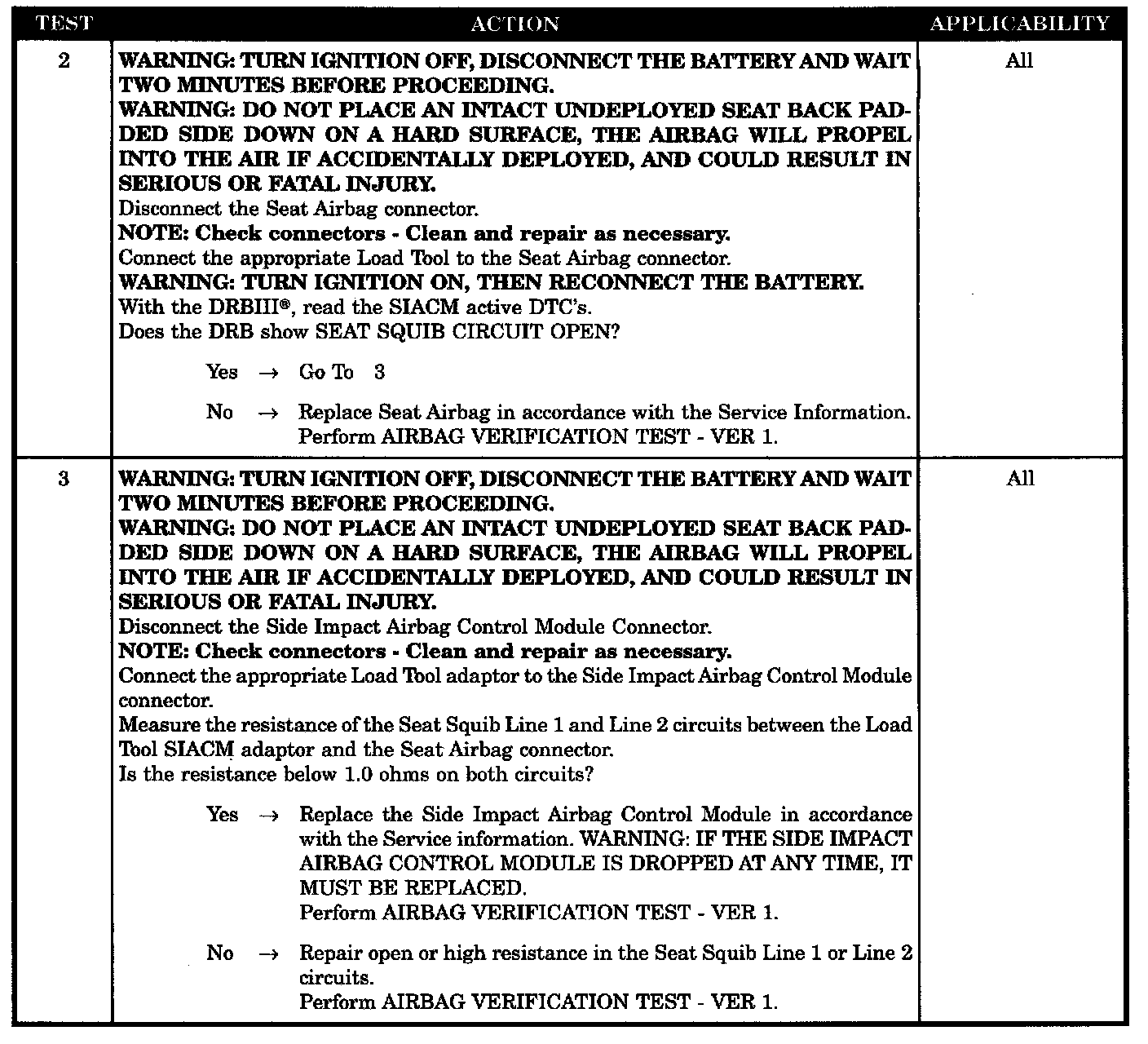 With the ignition is ON, the SIACM monitors the resistance of the Seat Squib circuits.