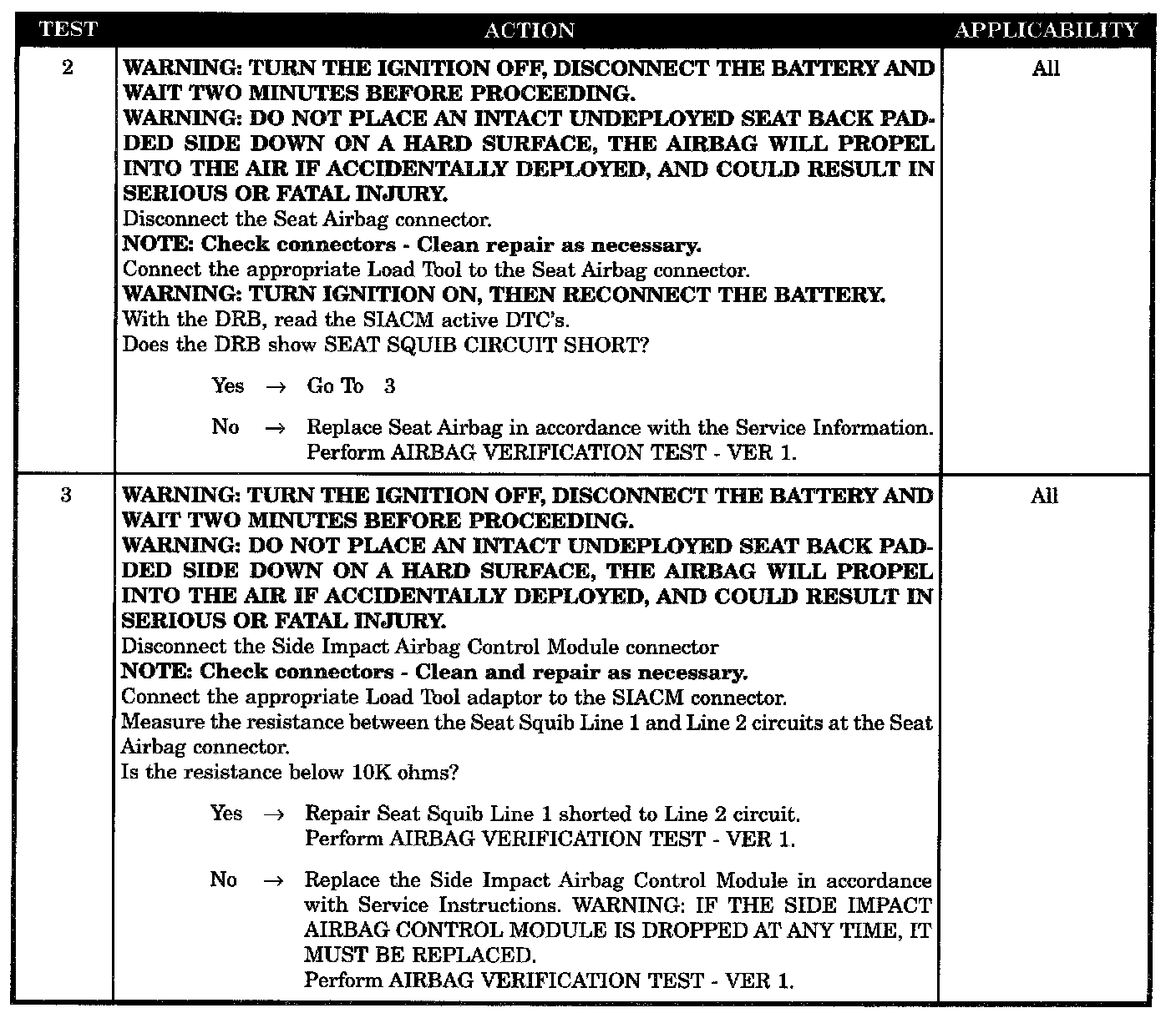 - SIACM, seat squib circuit short