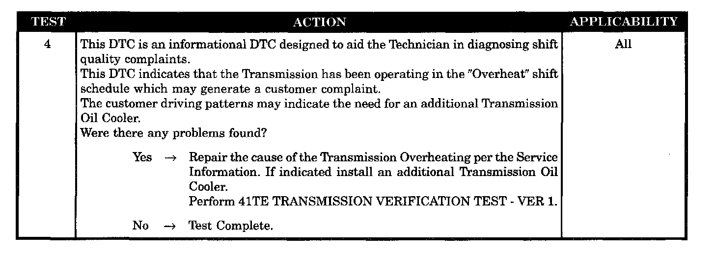 Immediately when the Overheat shift schedule is activated 116 °C (240 °F) Transmission oil temp.