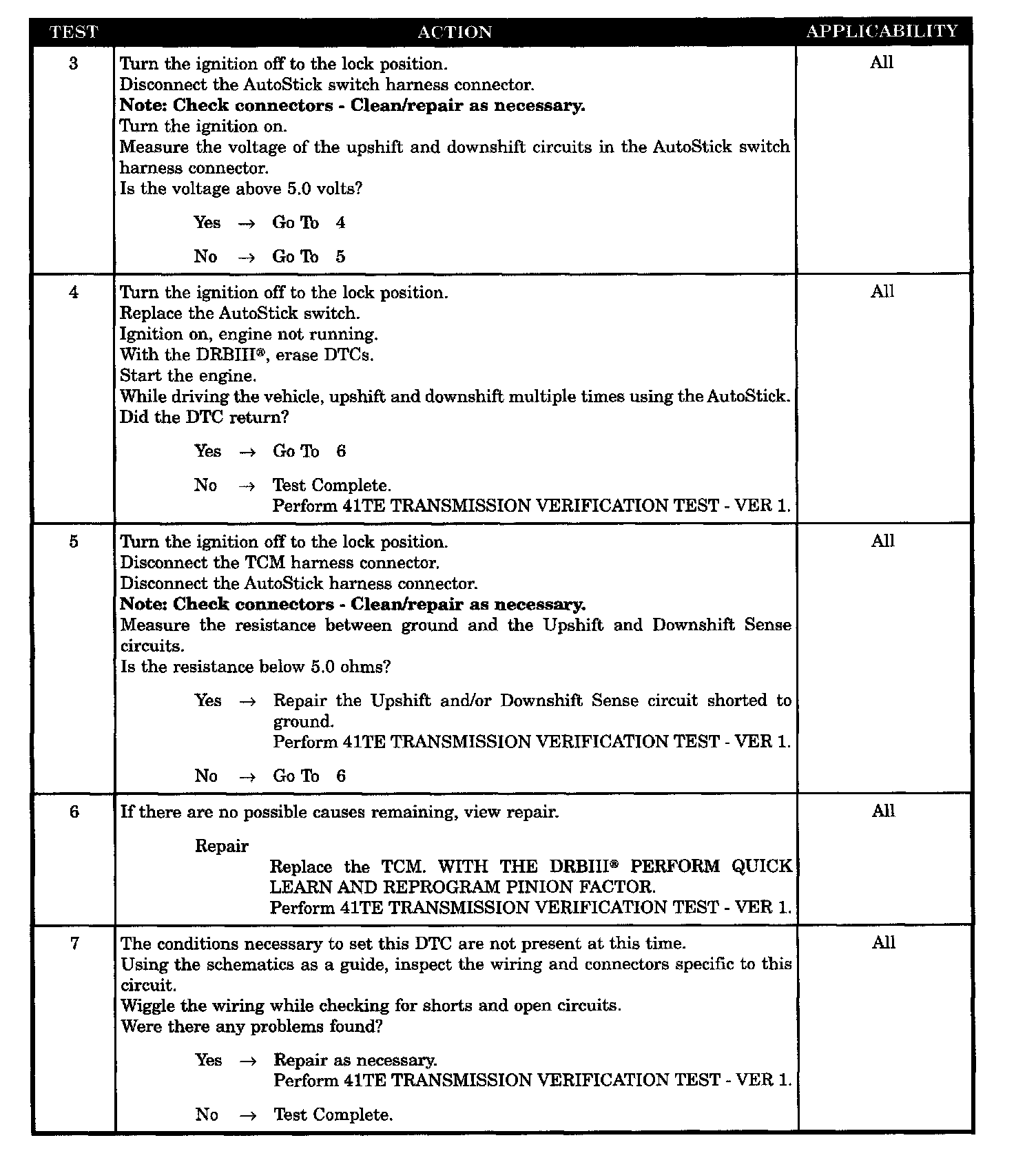The transmission shift lever is not in the AutoStick Position and either the Upshift or Downshift switch is closed. This code will also set if both switches are closed at the same time.