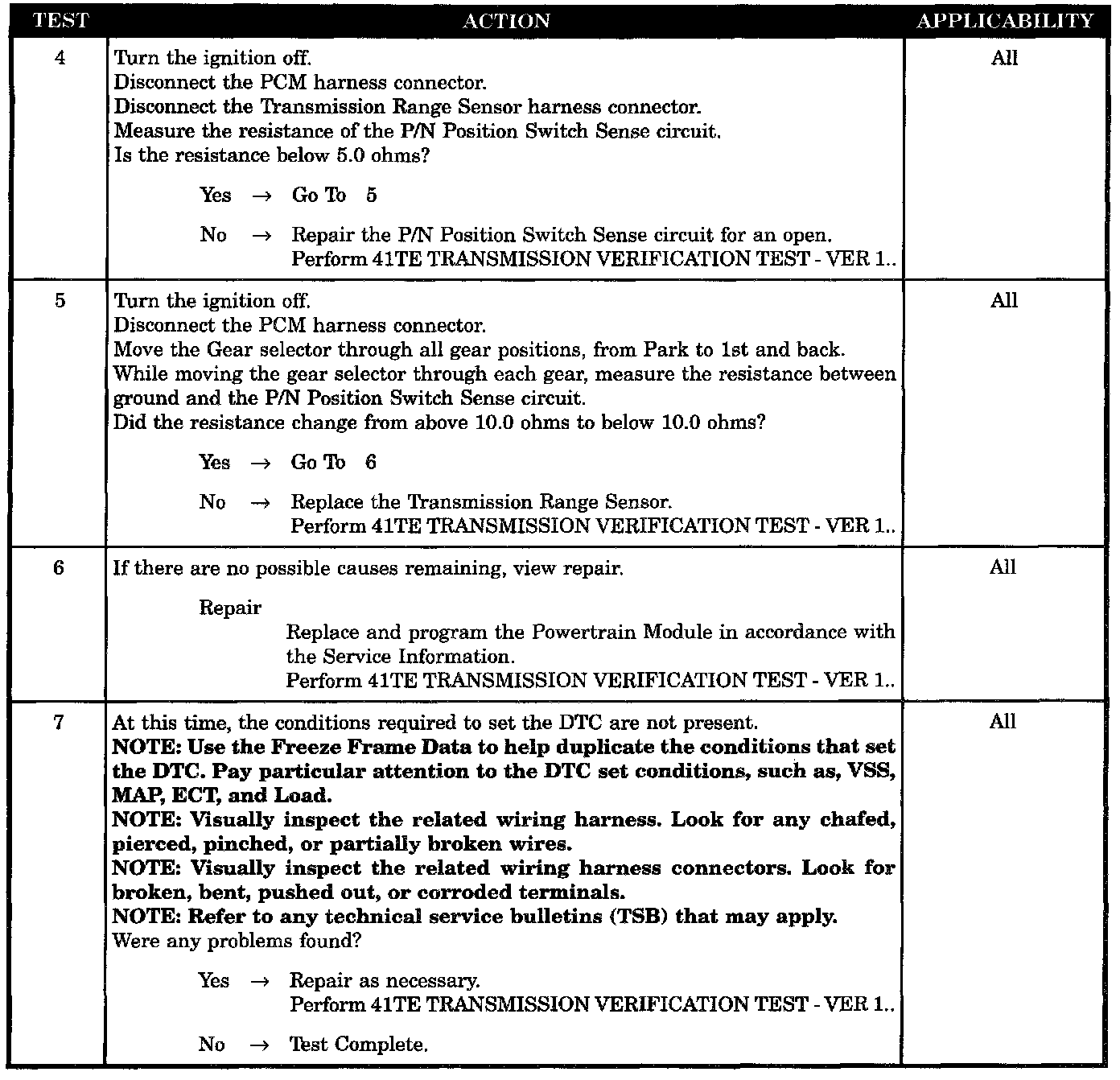 This code will set if the PCM detects an incorrect Park/Neutral switch state for a given mode of vehicle operation.