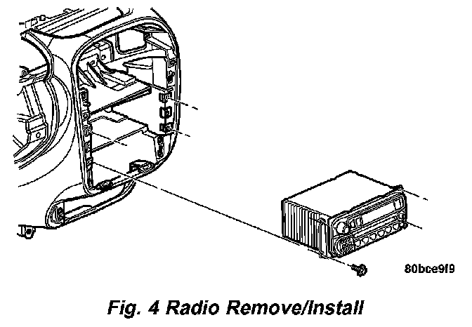 3. Remove four mounting screws on the radio and pull out of instrument panel.