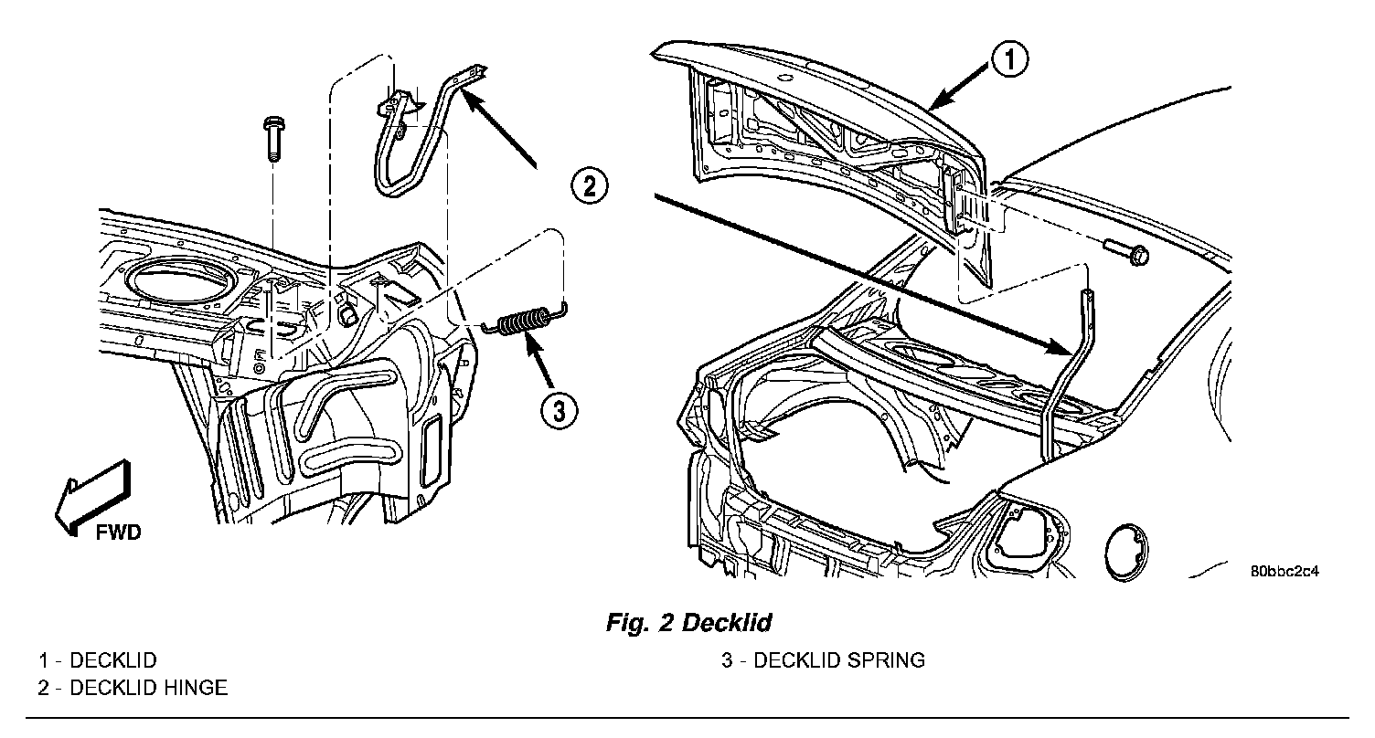 3. Pull lock cylinder from decklid (Fig. 2).