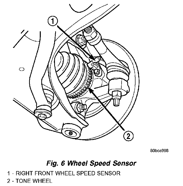 5. Remove the bolt mounting the wheel speed sensor head to the steering knuckle.