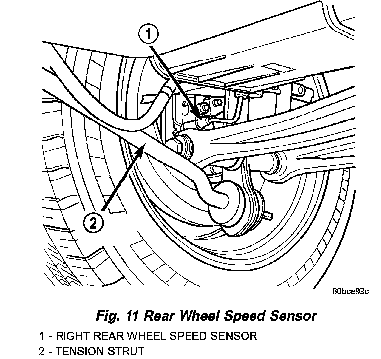 CAUTION: When removing a wheel speed sensor from the rear disc brake adapter, do not use pliers on the sensor head. This may damage the sensor head. If the sensor has seized, use a hammer and a punch to tap the edge of the sensor head ear, rocking the sensor side-to-side until free.