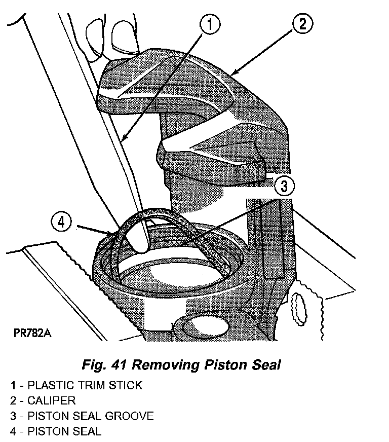 3. Using a soft tool such as a plastic trim stick, work the piston seal out of its groove in caliper piston bore. Discard the old seal.