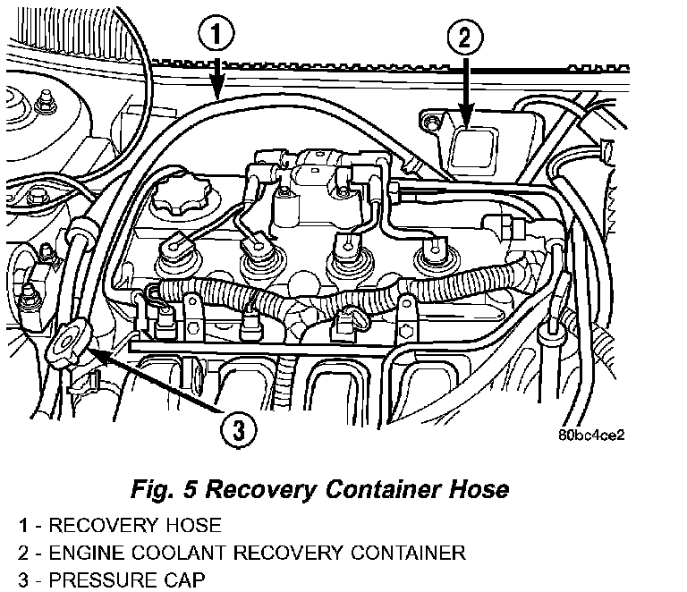 1. Disconnect recovery hose from water outlet connector/thermostat housing .