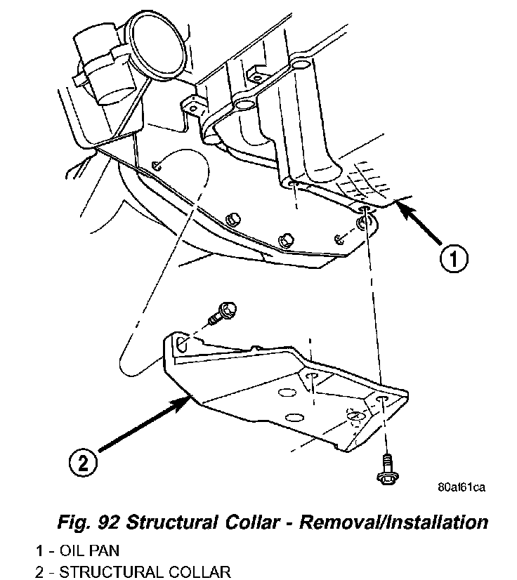 2. Remove structural collar from oil pan to transaxle (Fig. 92).