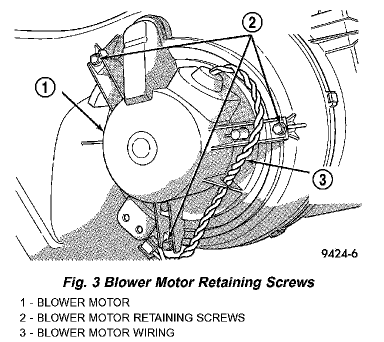 REMOVALThe blower motor is located on the bottom right side of the unit housing. The blower motor can be removed from the vehicle without having to remove the unit housing assembly.