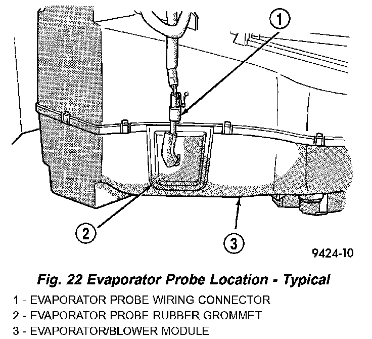 The evaporator probe is located in the A/C housing and placed in the evaporator fins.