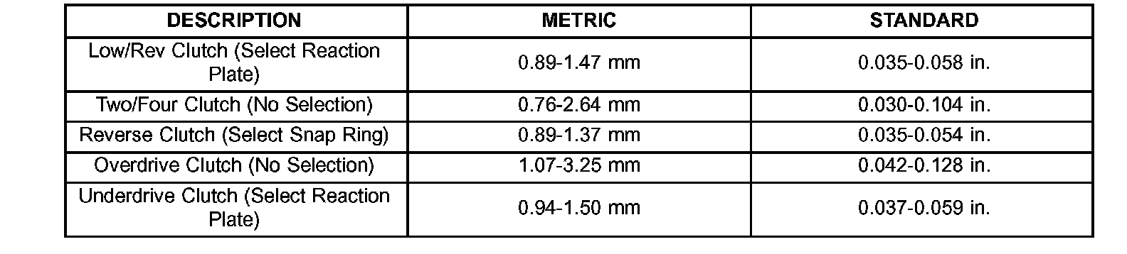 CLUTCH CLEARANCES:
