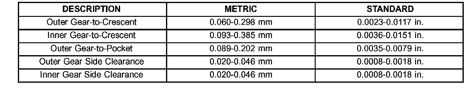 OIL PUMP CLEARANCES:
