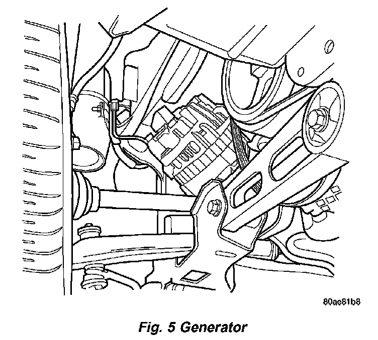9. Remove the upper and lower mounting bolt (Fig. 4) and move generator off of pivot bracket.