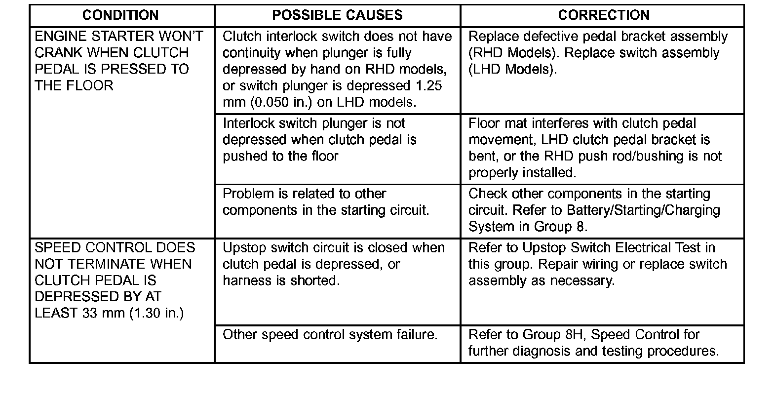SERVICE DIAGNOSIS - CLUTCH INTERLOCK/UPSTOP SWITCH
