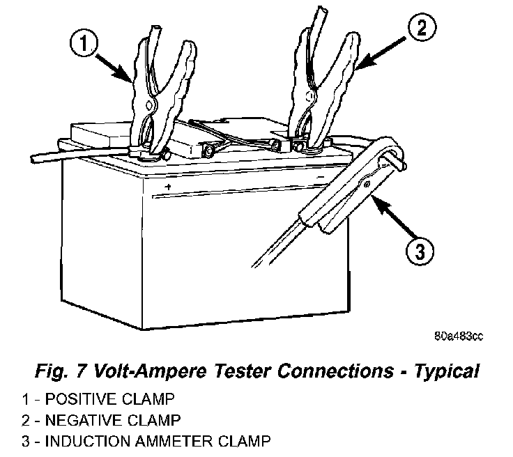2. Connect a volt-ampere tester to the battery terminals (Fig. 7). Refer to the operating instructions provided with the tester being used.