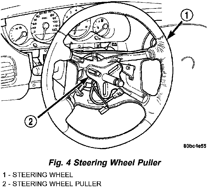12. Install a steering wheel puller on the steering wheel.