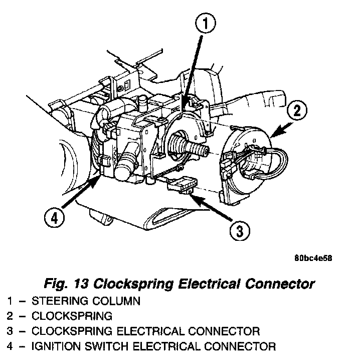 5. Connect the wiring harness electrical connector to the clock spring.