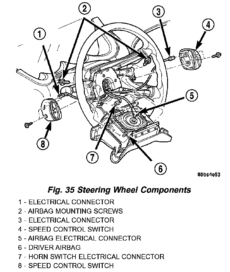 STEERING WHEEL REMOVALWARNING: DISCONNECT AND ISOLATE THE BATTERY NEGATIVE (GROUND) CABLE BEFORE BEGINNING ANY AIRBAG SYSTEM COMPONENT REMOVAL OR INSTALLATION PROCEDURE. THIS WILL DISABLE THE AIRBAG SYSTEM. FAILURE TO DISCONNECT BATTERY COULD RESULT IN ACCIDENTAL AIRBAG DEPLOYMENT AND POSSIBLE PERSONAL INJURY.
