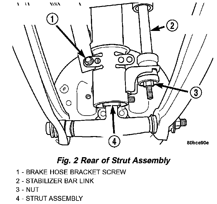a. Place the link center sleeve and bushings between the eye in the end of the stabilizer bar and the link mounting bracket on the strut.