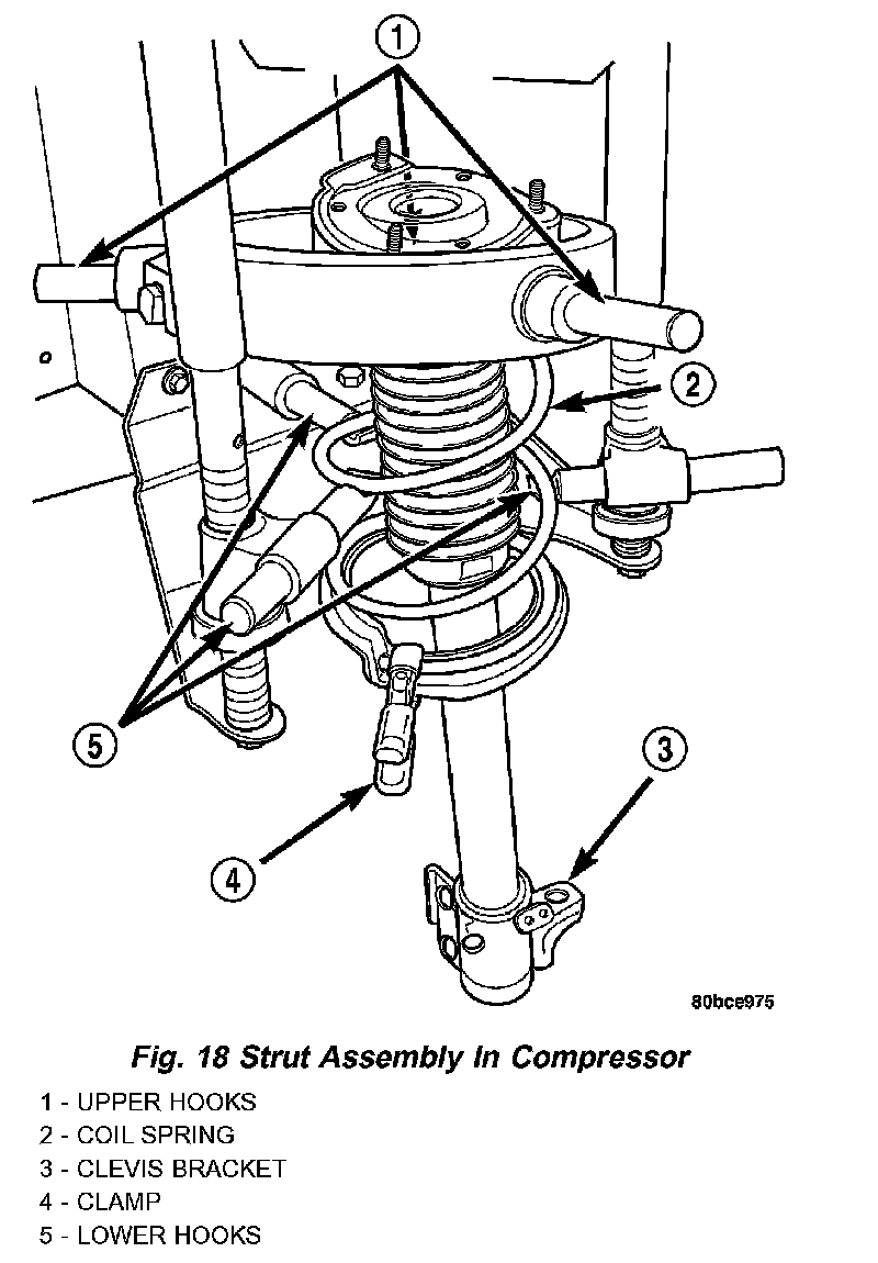 For the disassembly and assembly of the strut assembly, use strut spring compressor, Pentastar Service Equipment (PSE) tool W-720O, or the equivalent, to compress the coil spring. Follow the manufacturer's instructions closely.