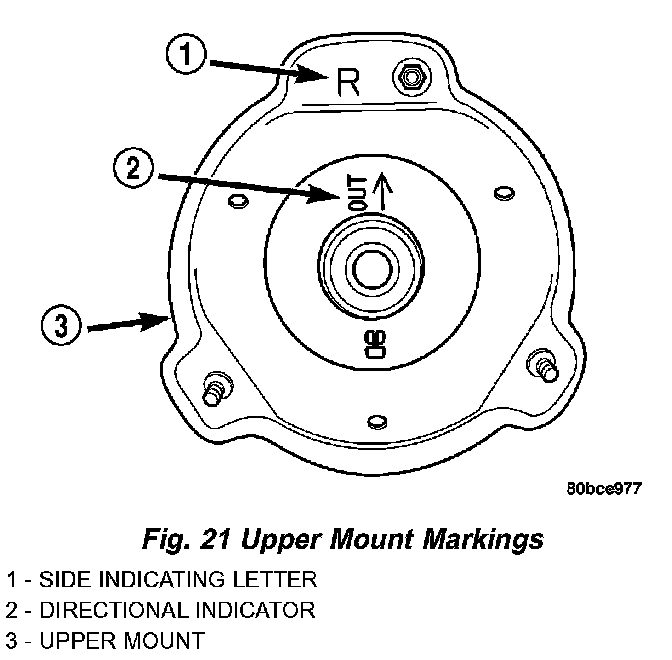 NOTE: Before installing the upper mount, check to make sure the correct side mount is being installed. Left and right upper mounts are different. A left mount will be marked with the letter "L" while a right mount will be marked with the letter "R".