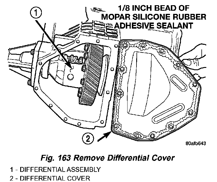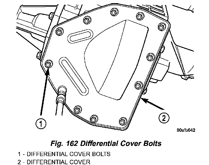 1. Remove the differential cover and bolts (Fig. 162) (Fig. 163).