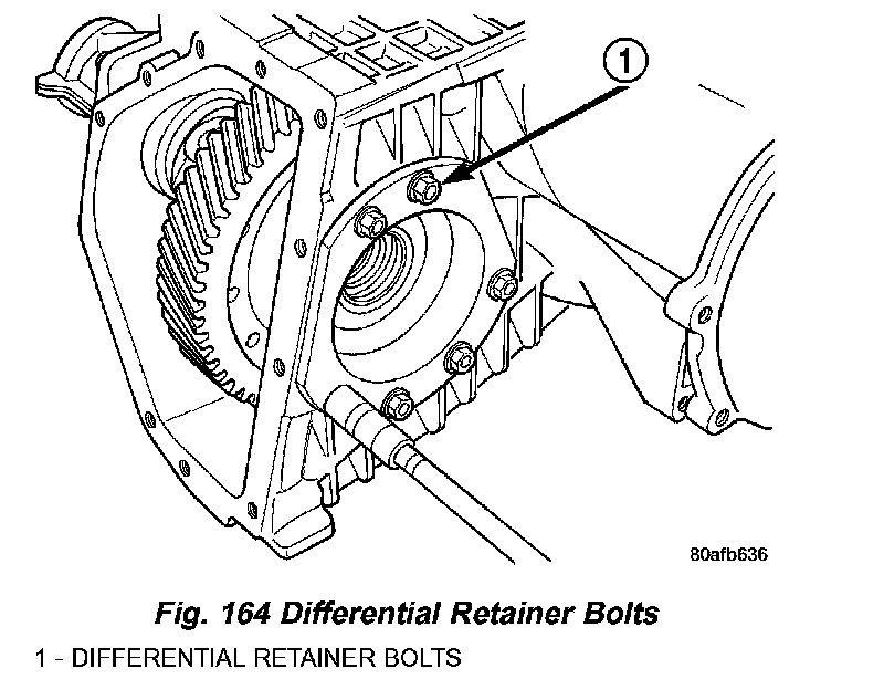 2. Remove the differential bearing retainer and bolts (Fig. 164) (Fig. 165).