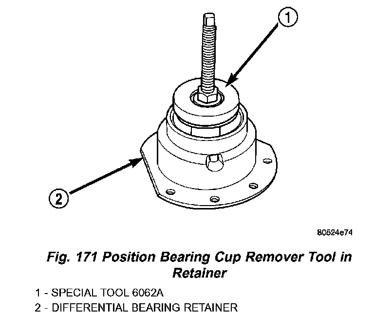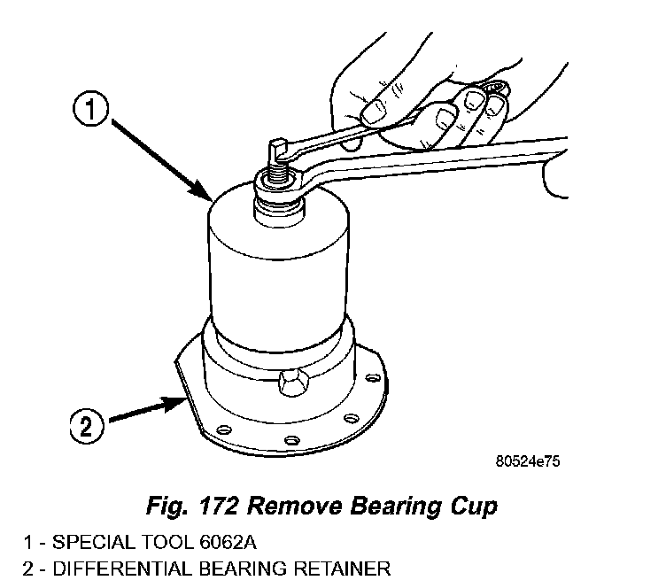 9. Using Miller Special Tool 6062A, remove the differential bearing race from the bearing retainer (Fig. 171) (Fig. 172).