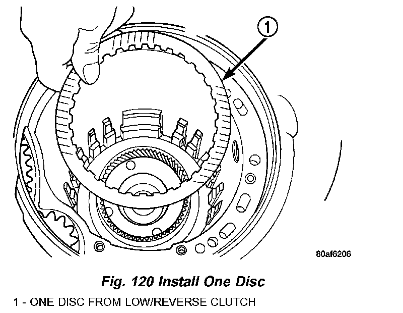 40. Install remaining low/reverse clutch disc (Fig. 120).
