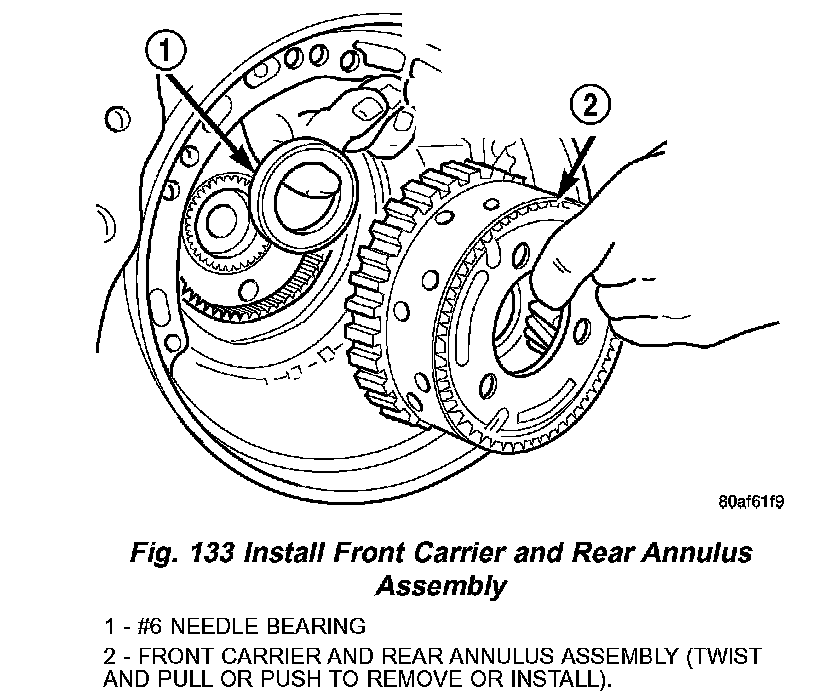 50. Install front carrier/rear annulus assembly and # 6 needle bearing (Fig. 133).