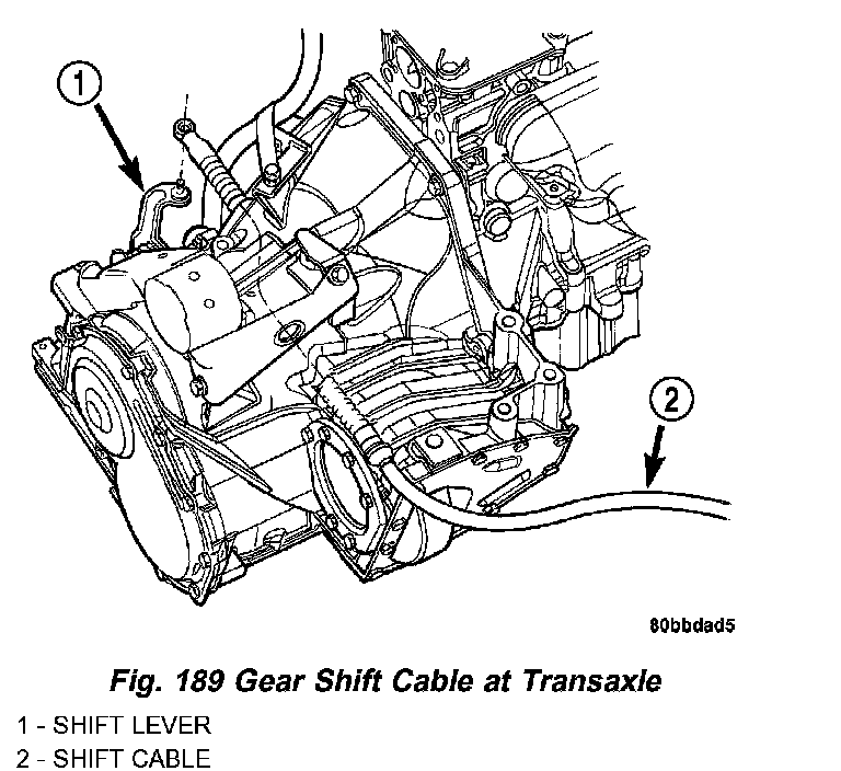5. Install gear shift cable to bracket and connect to shift lever (Fig. 189).