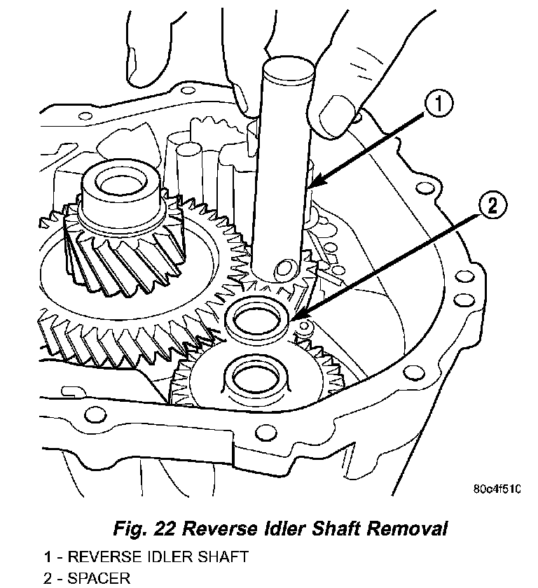 11. Remove reverse idler gear and spacer (Fig. 23).