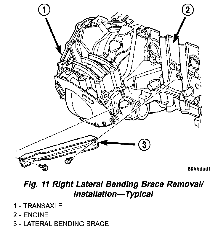 9. Install left engine-to-transaxle bending brace (Fig. 10).