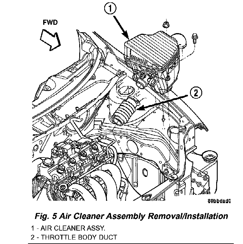 3. Remove air cleaner/throttle body assy. (Fig. 5) as follows: