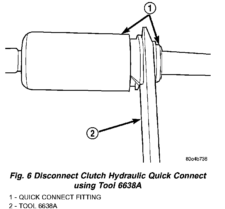 7. Using Tool 6638A, disconnect clutch hydraulic quick-connect fitting (Fig. 6) (Fig. 7).